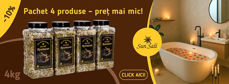 PACHETUL CONTINE 4 cutii Sare de baie REUMASUN REUMATISM SI ARTRITA de 1KG la PRET SPECIAL
